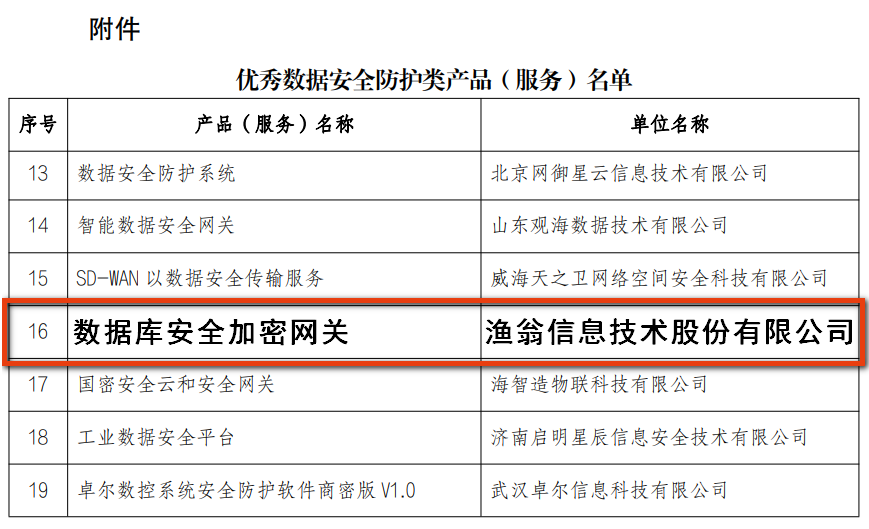 近期,山东省工业和信息化厅组织召开了2022年度山东省工业领域数据安全优秀产品、服务和应用解决方案评选工作,并对评选结果进行了公示。bifa必发信息自主研发的“数据库安全加密网关”产品,凭借先进技术和创新优势,成功入选“优秀数据安全防护类产品”名单。